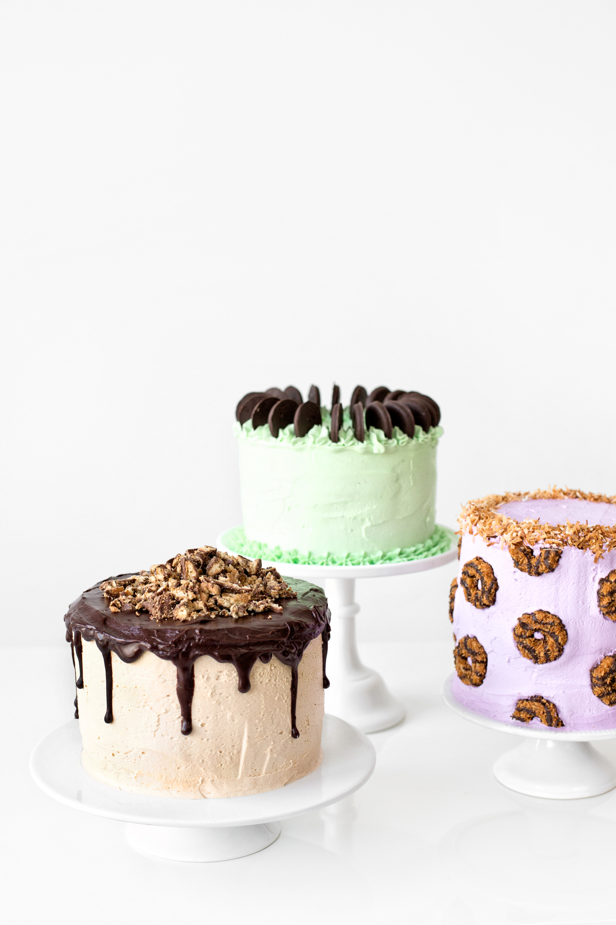 THIS POST IS EPIC!!! I love each cake! I want to eat a slice of each! I have to tell you some sad Canadian news. We don’t have these delicious Girl Scout cookies in Canada. We have GIRL GUIDE cookies. They are simply one row of vanilla and one row of fudgey chocolate sandwich cookies. I HAVE NEVER HAD A SAMOA. (deep sad face.)