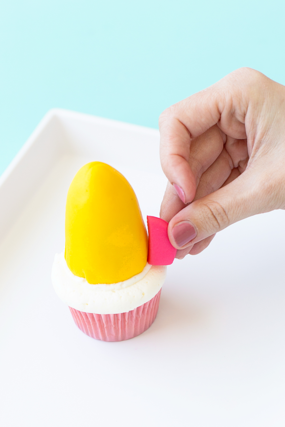 5. Trim off any extra fondant and fold under to create a smooth finish around the bottom. You can use two fondant smoothers to shape and smooth the rockets even more if you’d like.