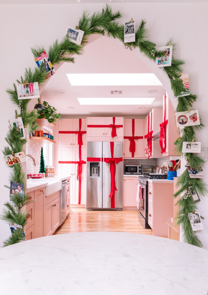 I’ll walk you through how we hang our garlands on our archways (so they’re removable, with no damage!), and what we use to clip the cards to them!