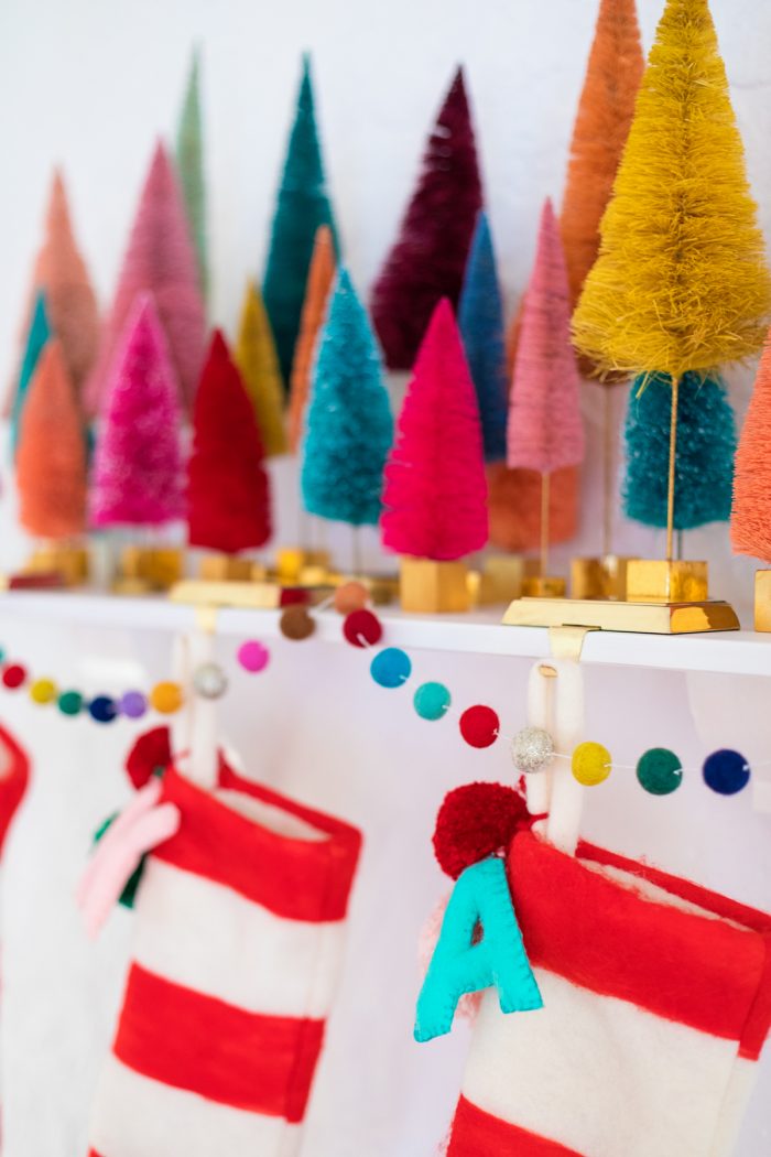 Today I wanted to share a huge guide to where to buy bottle brush trees and other decorative Christmas trees, too! They have become quite popular so they do tend to sell quickly. I tried to include as many different sources as possible so you could start a whole rainbow like mine, or tailor your collection to your own favorite Christmas palette.
