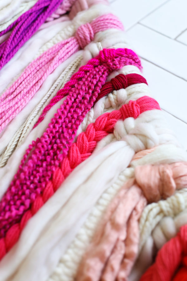 That said, the reason it looks so good is because of that texture which means, we had to buy a LOT of yarn and it isn’t exactly a budget friendly project. I believe we spent somewhere between $250-300 on it. Which, if you compare it to weavings you can buy at this size (it’s about 4’x6′ AKA huge), it’s a lot more affordable. Of course if you weren’t making it this large, it would be cheaper too! Just wanted to warn ya! Also, craft stores tend to run really great sales on yarn so wait for one of those and it’ll save you a bunch! Here’s the how-to!